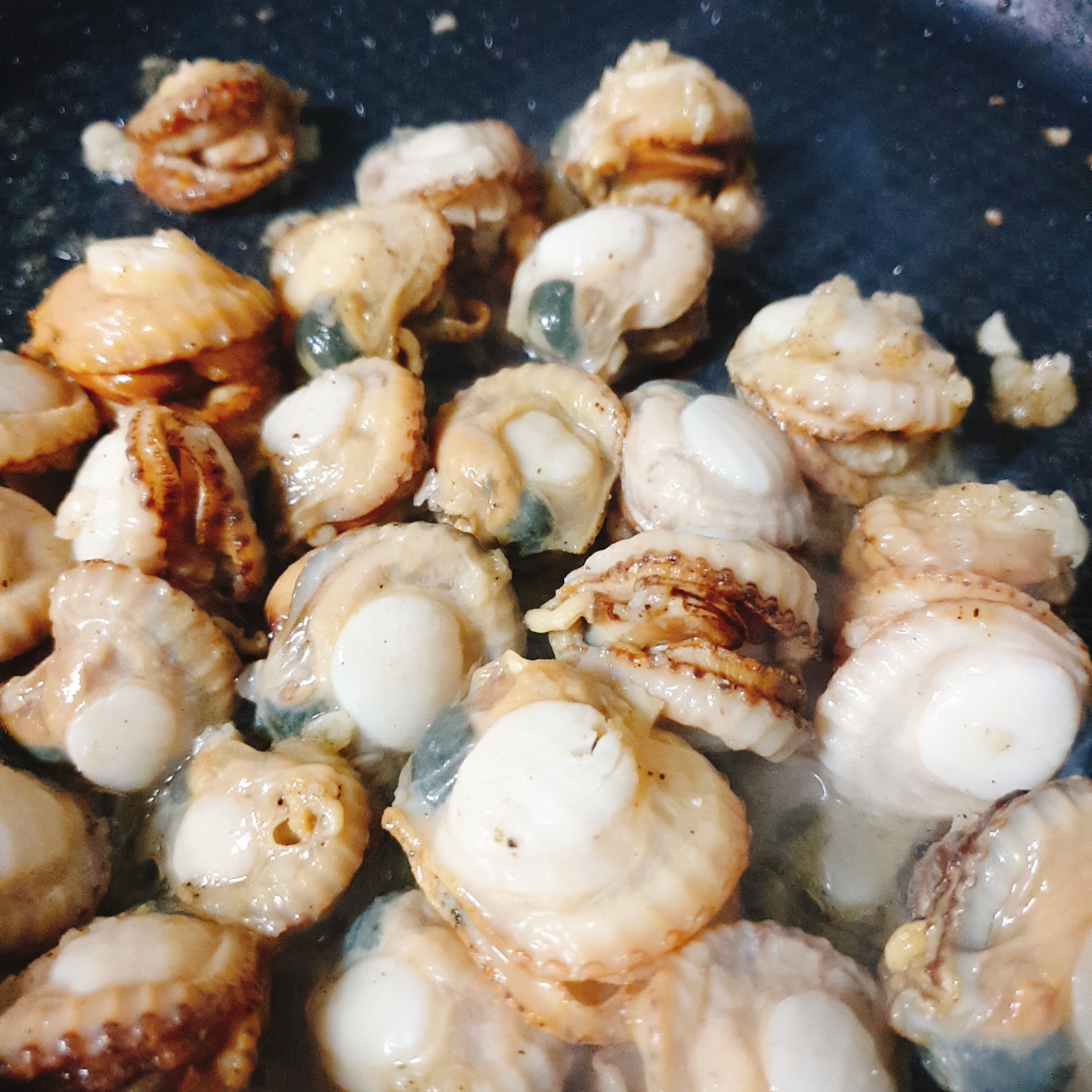 버터가 녹으면 가리비를 넣고 함께 볶아줍니다.