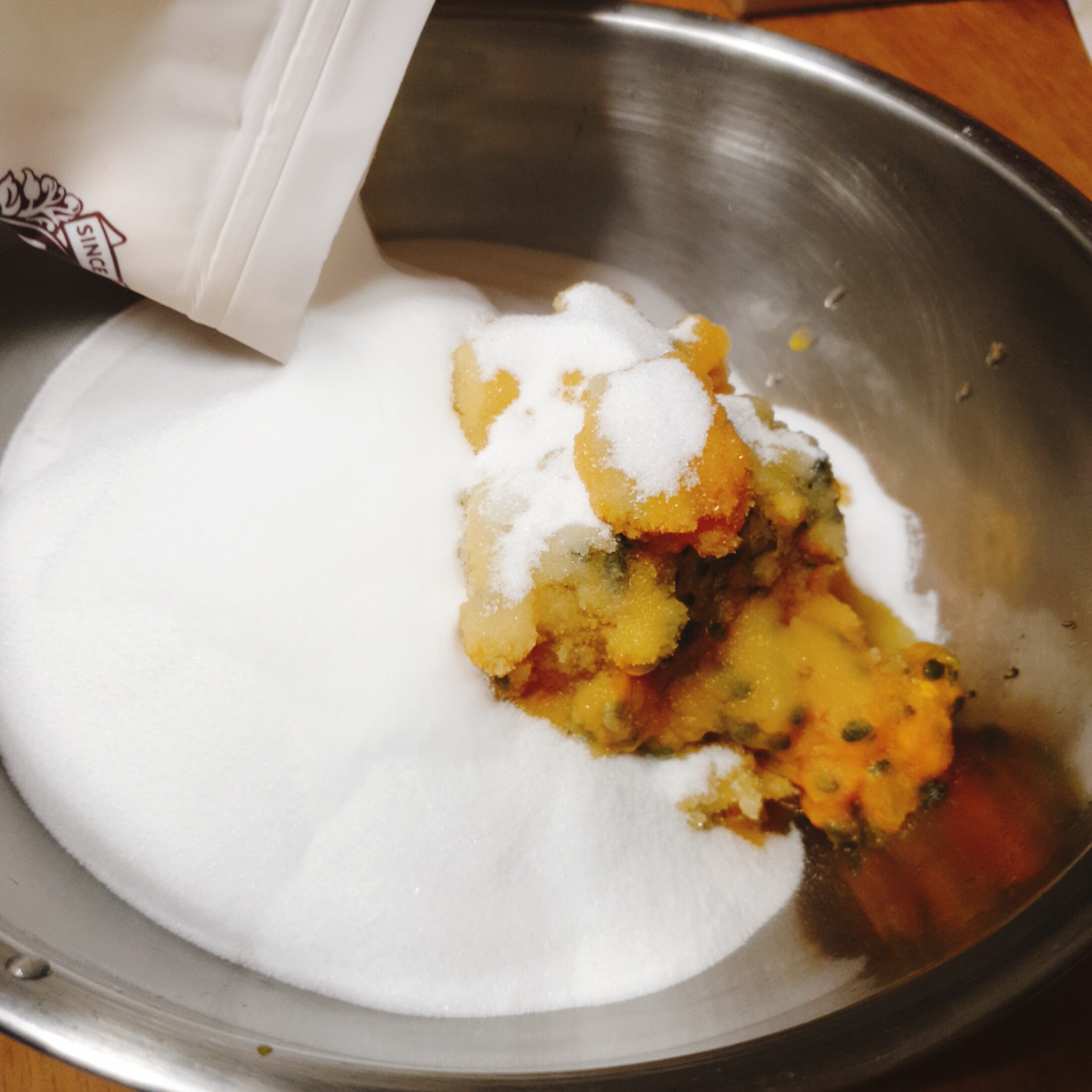 퓨레와 설탕이 잘 섞이도록 저어줍니다.