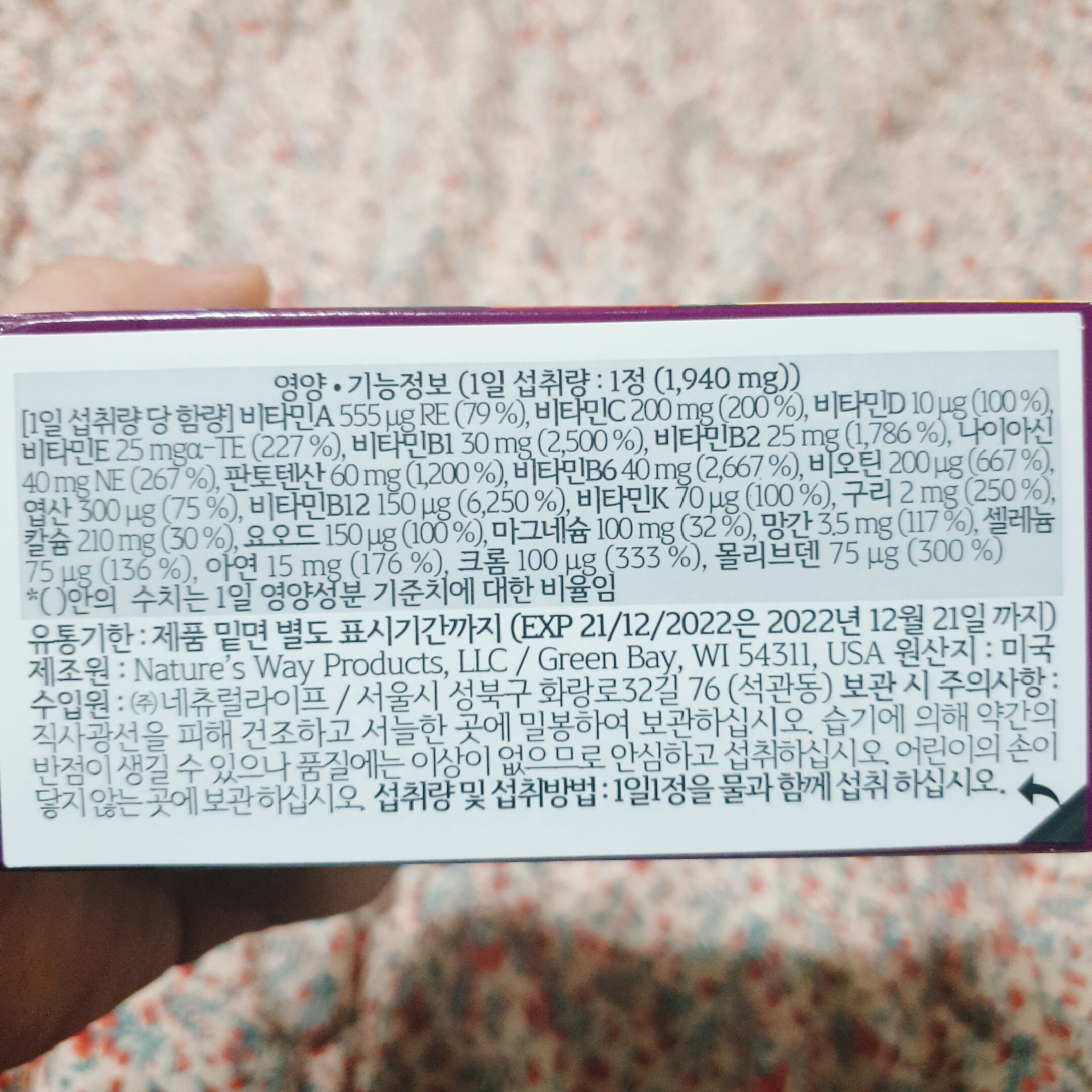 영양 기능 정보란을 보면 정말 다양한 비카민과 미네랄 성분이 있더라구요.