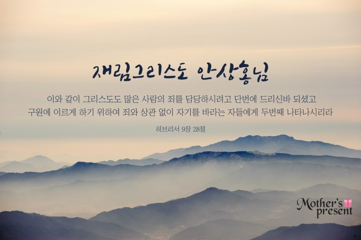 성경은 마지막 시대인 오늘날, 그리스도께서 사람되어 두 번째 이 땅에 오신다고 기록했다. 구원과 죄사함이 약속된 새 언약 생명의 진리가 종교 암흑세기 동안 완전히 없어졌기 때문이다. 일찍이 초림 예수님께서는 진리의 성령 즉 재림 예수님께서 이 땅에 오셔서 사라졌던 모든 초대교회의 진리를 회복하신다고 말씀하셨다(요14:26).