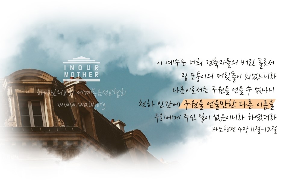 그러므로 예수님의 새 이름이 바로 성령시대 구원자의 이름입니다. 각 시대마다 그 시대의 구원자의 이름으로 기도할 때 그 기도에 대한 응답으로 구원을 주시기에 성령시대인 오늘날에는 반드시 예수님의 새 이름으로 기도해야만 하겠습니다.