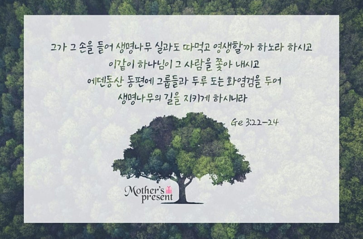 에덴의 생명과가 그저 에덴의 역사의 일부에 불과할까요? 아닙니다. 예수님께서는 창세부터 감추인 것들을 드러내시겠다 말씀주셨습니다(마13:34-35). 창세의 역사가 기록된 책은 바로 창세기입니다. 창세의 역사 속 에덴의 생명과 역시 비유로써 예수님께서 오셔서 그 생명과의 실체를 알려주셨습니다.